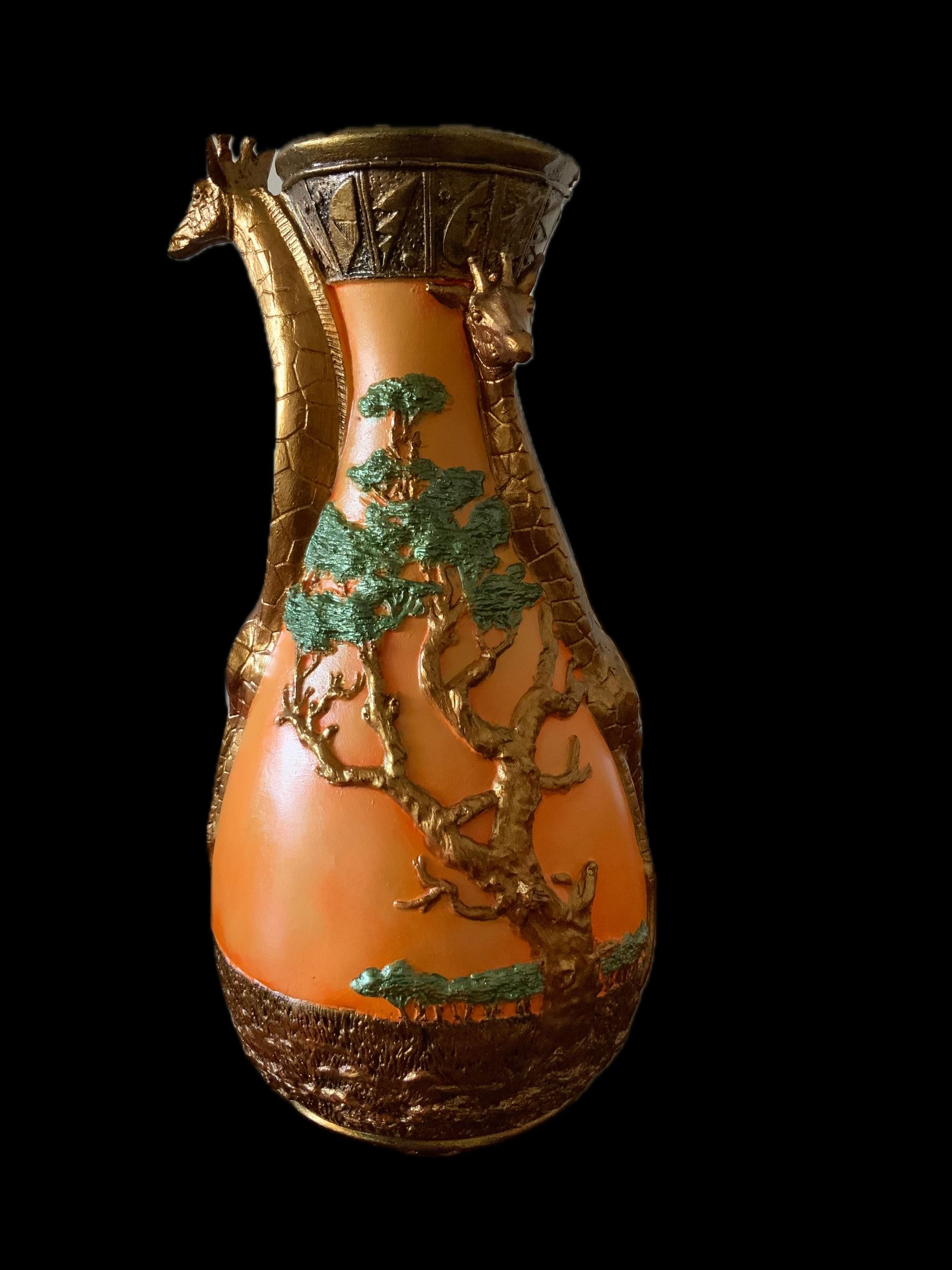 Fil ve Zürafa Vazo - Turuncu / Polyester | Elişi Ürünlerim